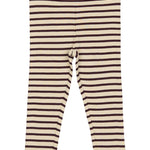 Deze comfortabele legging is gemaakt van een klassieke rib stof met strepen, die zacht aanvoelt en heerlijk meerekt. De legging is gemaakt van een combinatie van biologisch katoen en modal. De elastische tailleband zorgt voor een goede pasvorm en extra gemak bij het aan- en uitkleden.